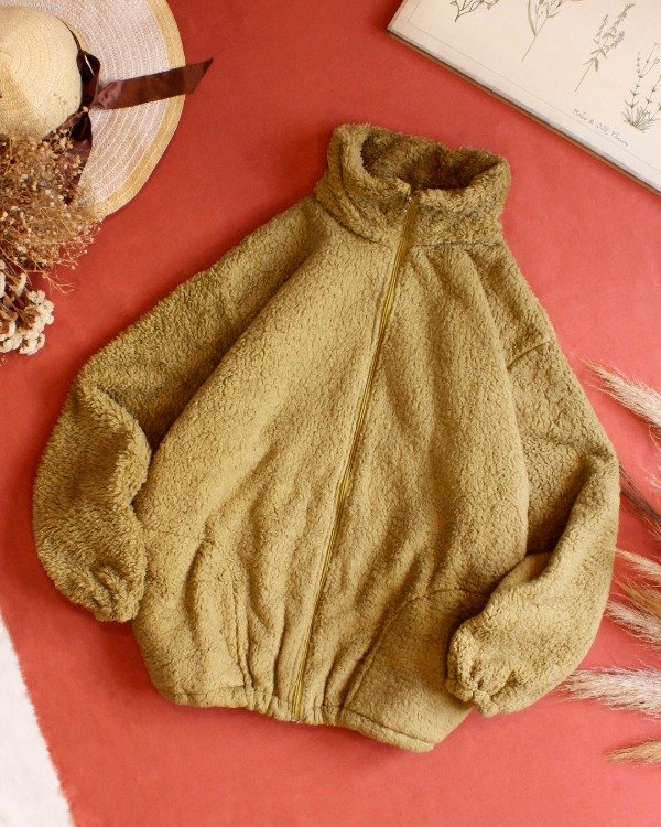Textil corderito bifaz (corderito de ambos lados) / Bolsillos delanteros escondidos en laterales / Puños elastizados con elastico / Cintura elastizada / Acceso por cierre /